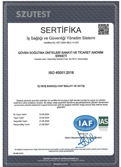 CE 2014/68/EU belgemiz, ürünlerimizin Avrupa Birliği normlarına ve gerekliliklerine uygun olduğunu gösterir.